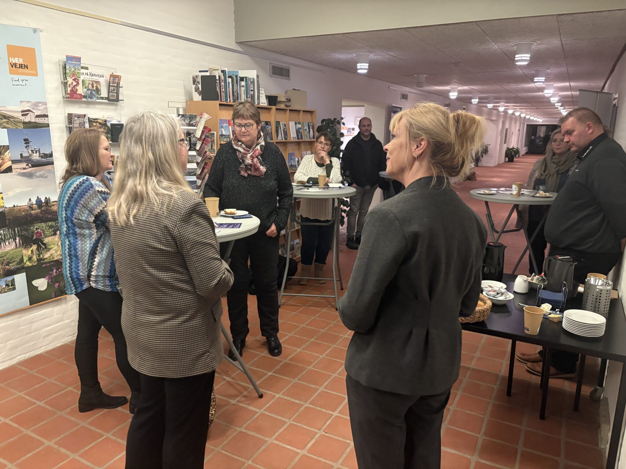 - Kaffe og rundstykker ved caféborde
